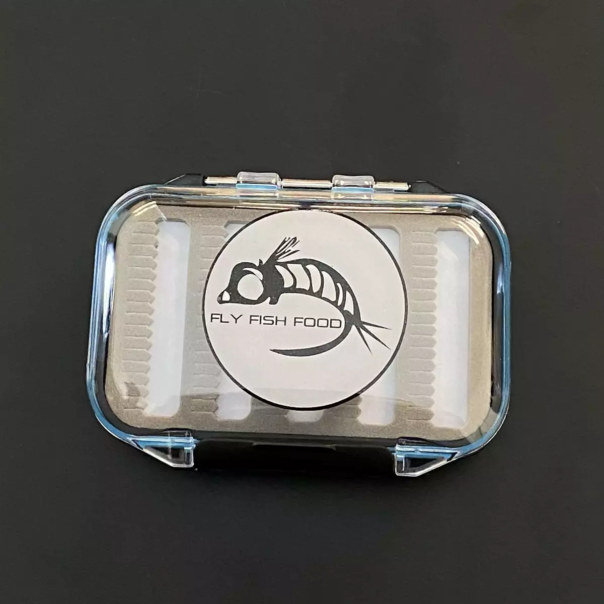 FLY FISH FOOD LOGO FLY BOX, CLEAR DOUBLE SIDED – SMALL, DRY AND NYMPH FOAM