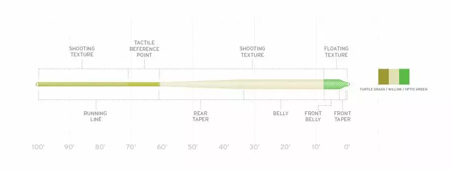 - Long rear taper for extended line control and long-distance casting